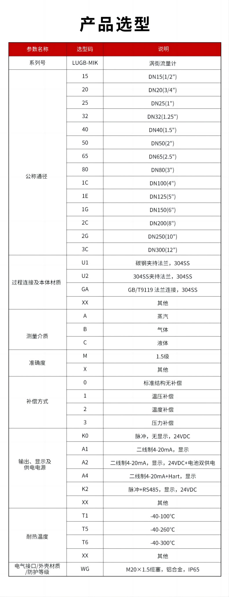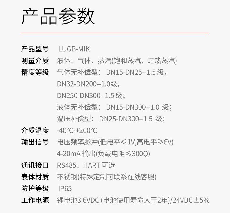 LUGB管道式:1.0级、1.5级 ;LUCB插入式:2.5级